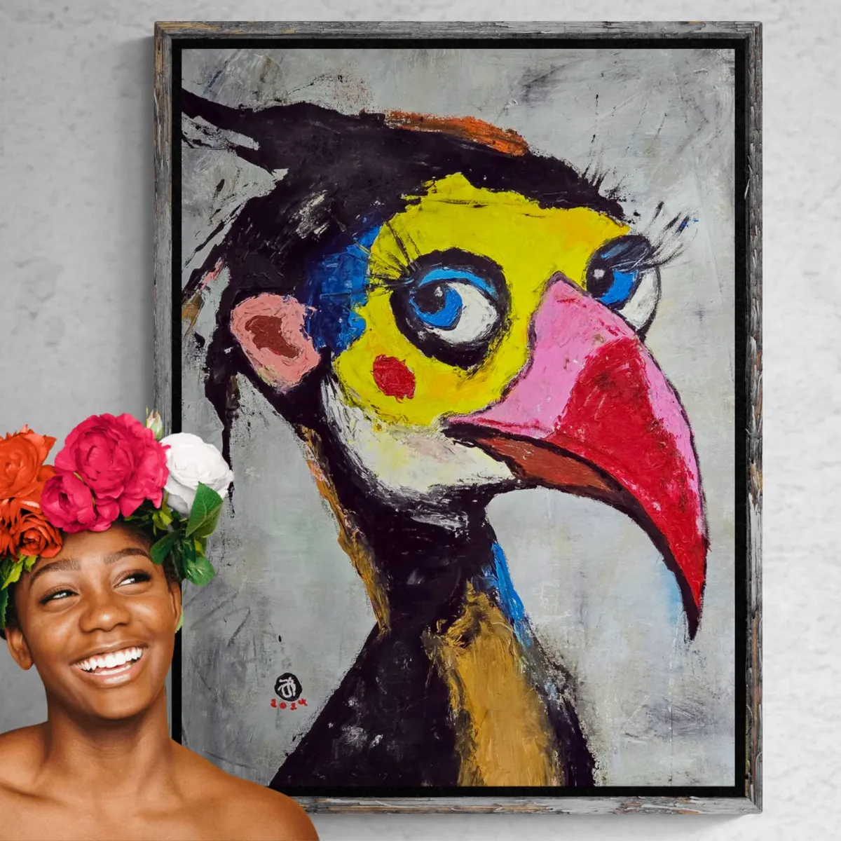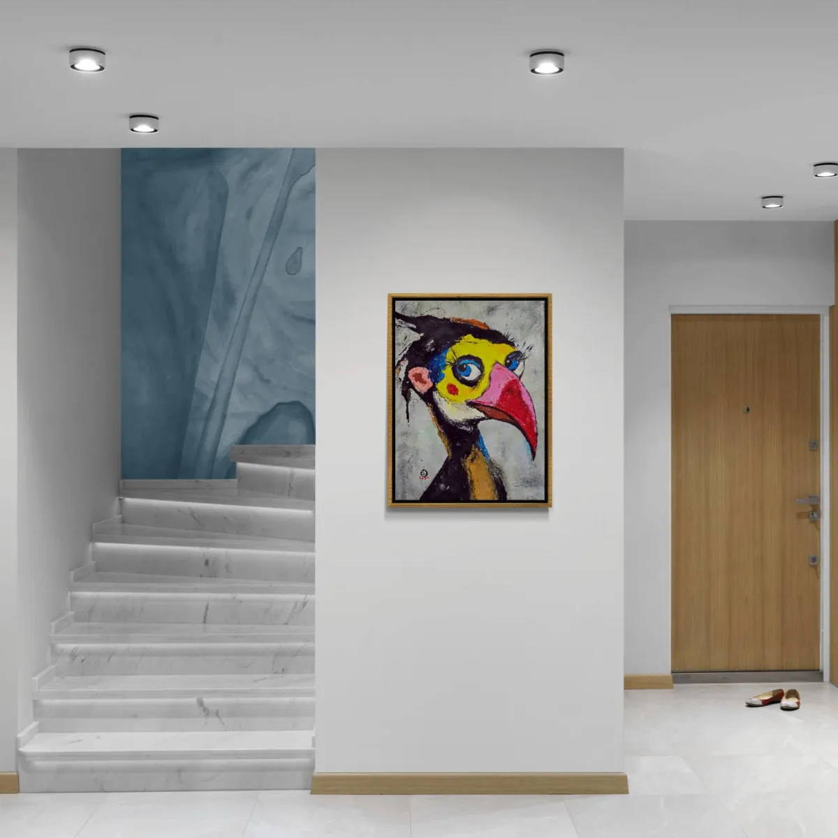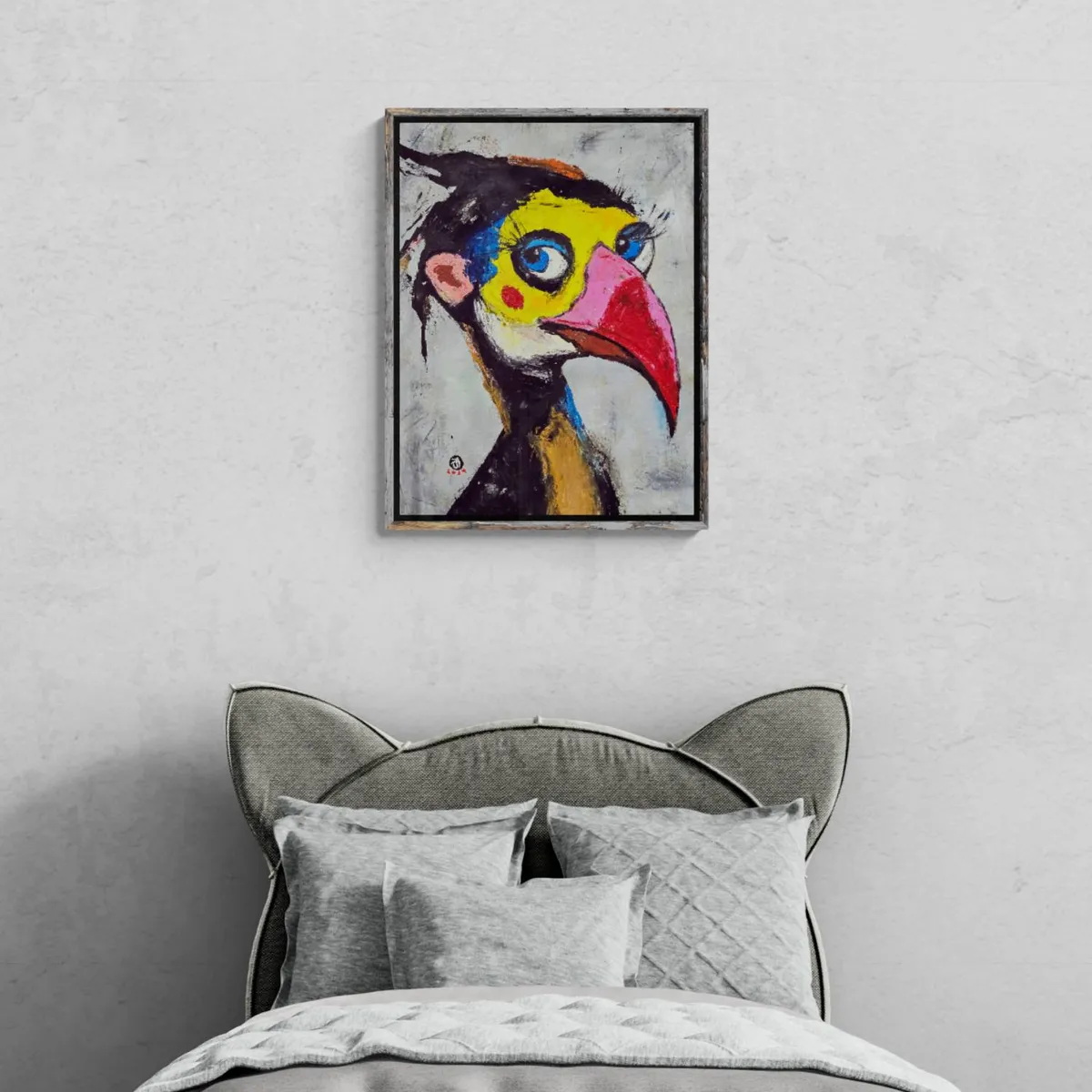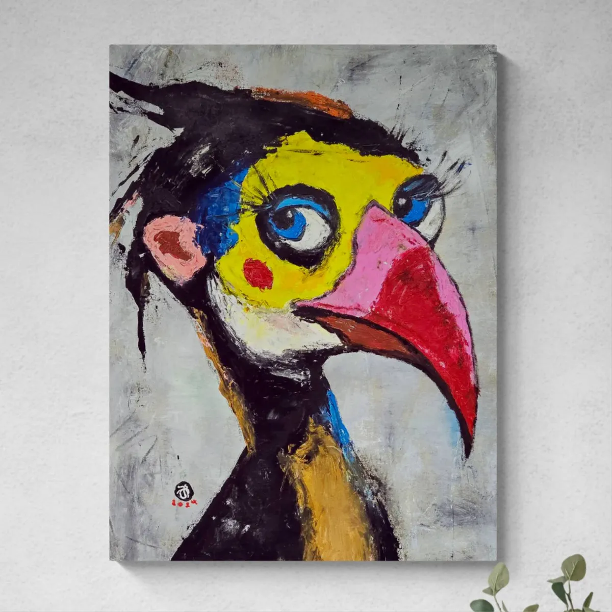 Original Character Portrait created by Arvydas Gaiciunas (Retne). "Ga N-102" is an expressive and vibrant character portrait that brings a unique blend of abstract and figurative elements into your space. The bold use of color and dynamic brushstrokes create a whimsical yet profound artwork that adds depth and intrigue to any interior, seamlessly fitting into both contemporary and traditional settings. This piece is a celebration of creativity and individuality, inviting viewers to explore the emotions and personality of the character. Technical Details: Medium: Acrylic and mixed media on high-quality unprimed cotton canvas. Dimensions: 80x60x2.5 cm (stretched on a wooden stretcher frame, ready to hang). Finish: UV varnish for color protection and durability. The artwork is hand-signed by the artist on the front and dated and signed on the back. Side Details: The painting extends over the edges of the canvas. As the artwork is created on a larger canvas (90x70 cm) and then stretched onto a 80x60 cm frame, the sides of the painting naturally continue the artwork’s design, creating a seamless wrap-around effect. This means the painting can be displayed beautifully without a frame, as it looks complete and attractive from all angles. However, you can also choose to frame the piece to match your interior decor for an even more personalized touch. Certificate of Authenticity: Included: Yes, signed by the artist. Contact and Social Media: Instagram: retne_ Linktree: linktr.ee/retneart