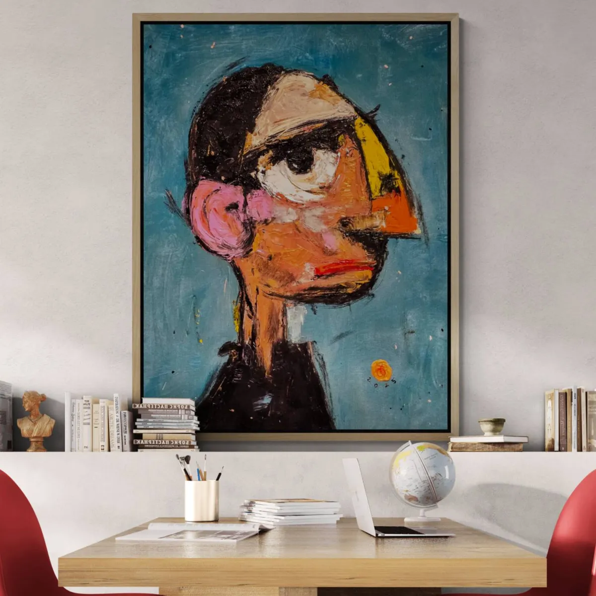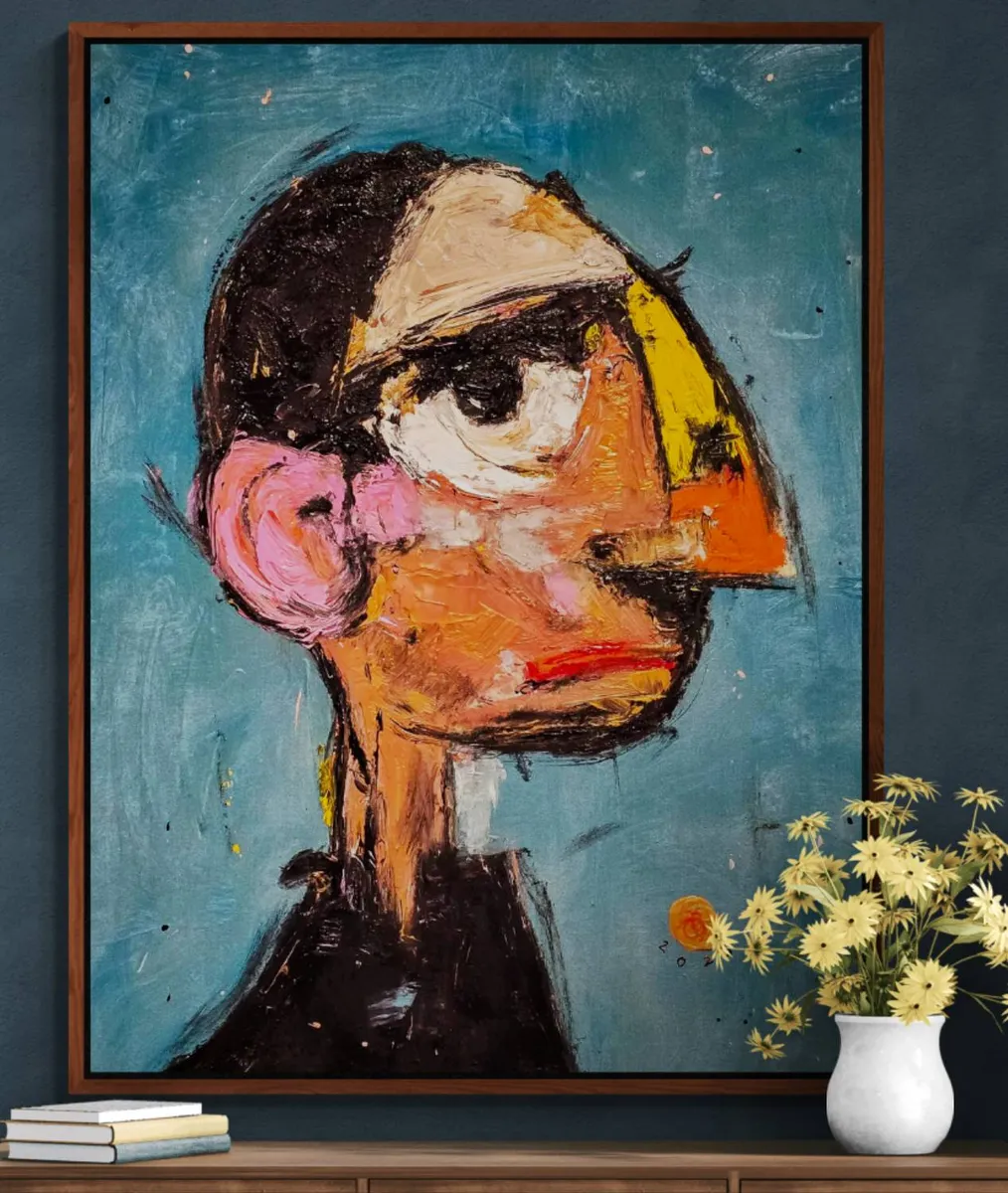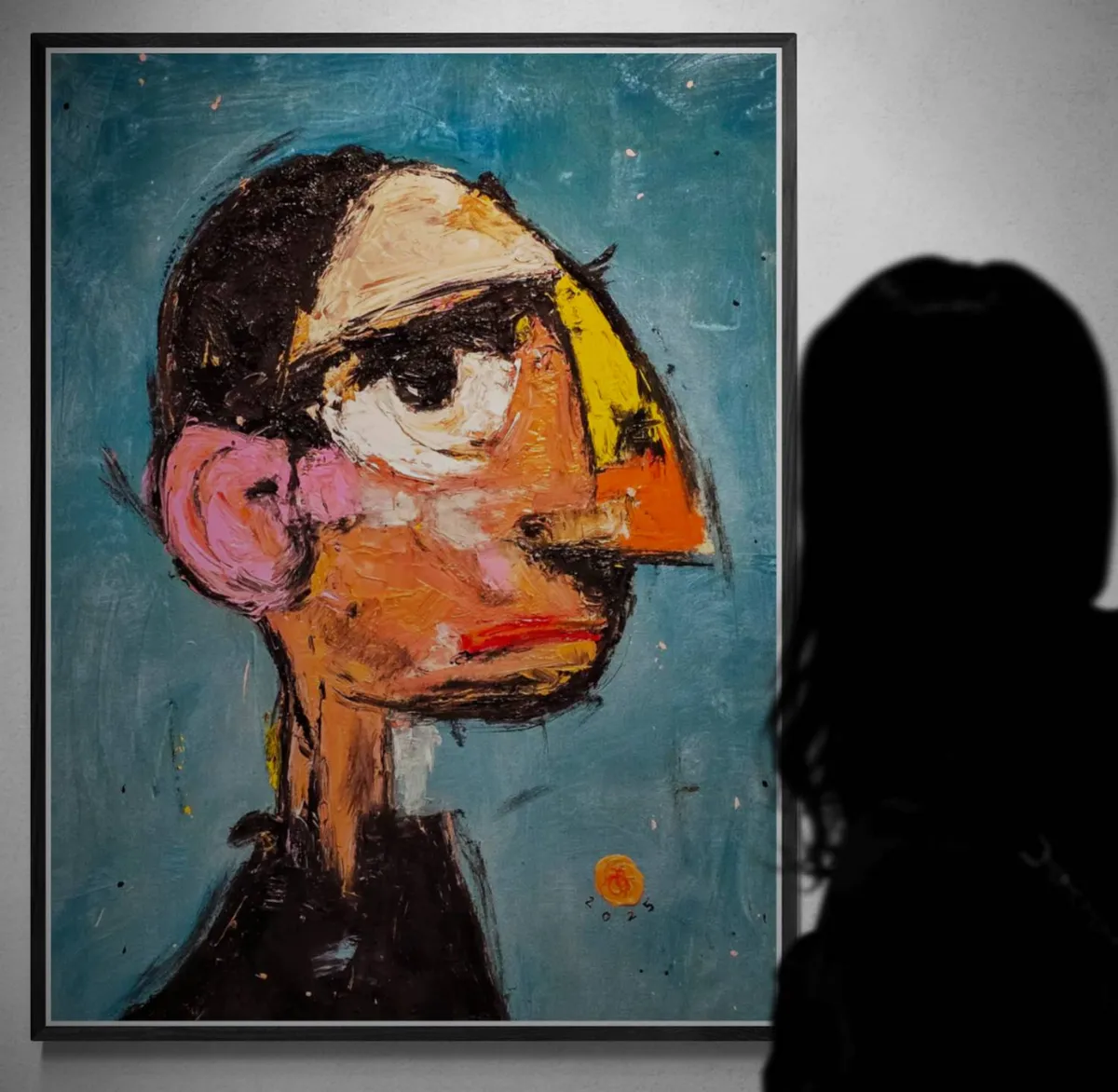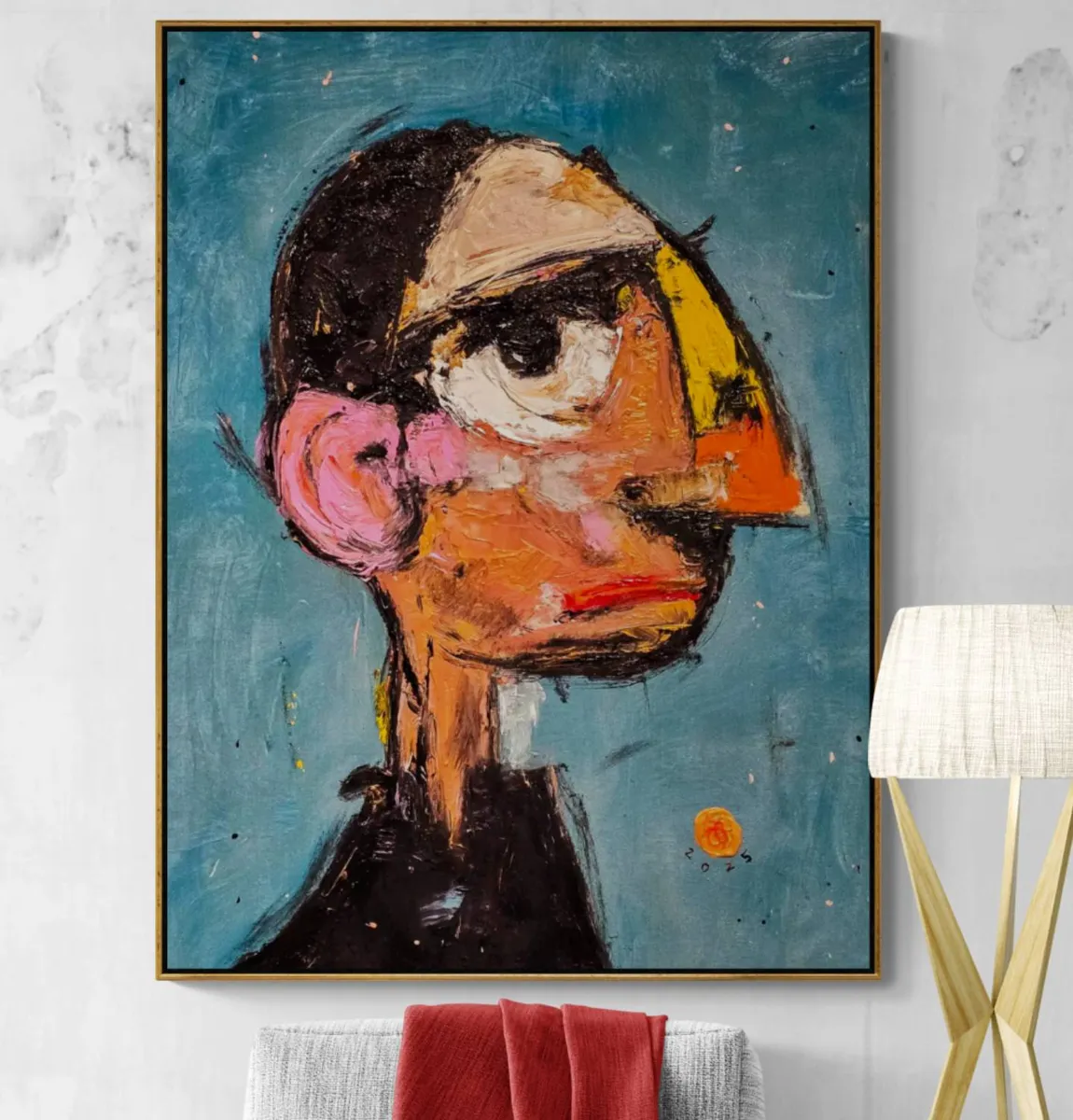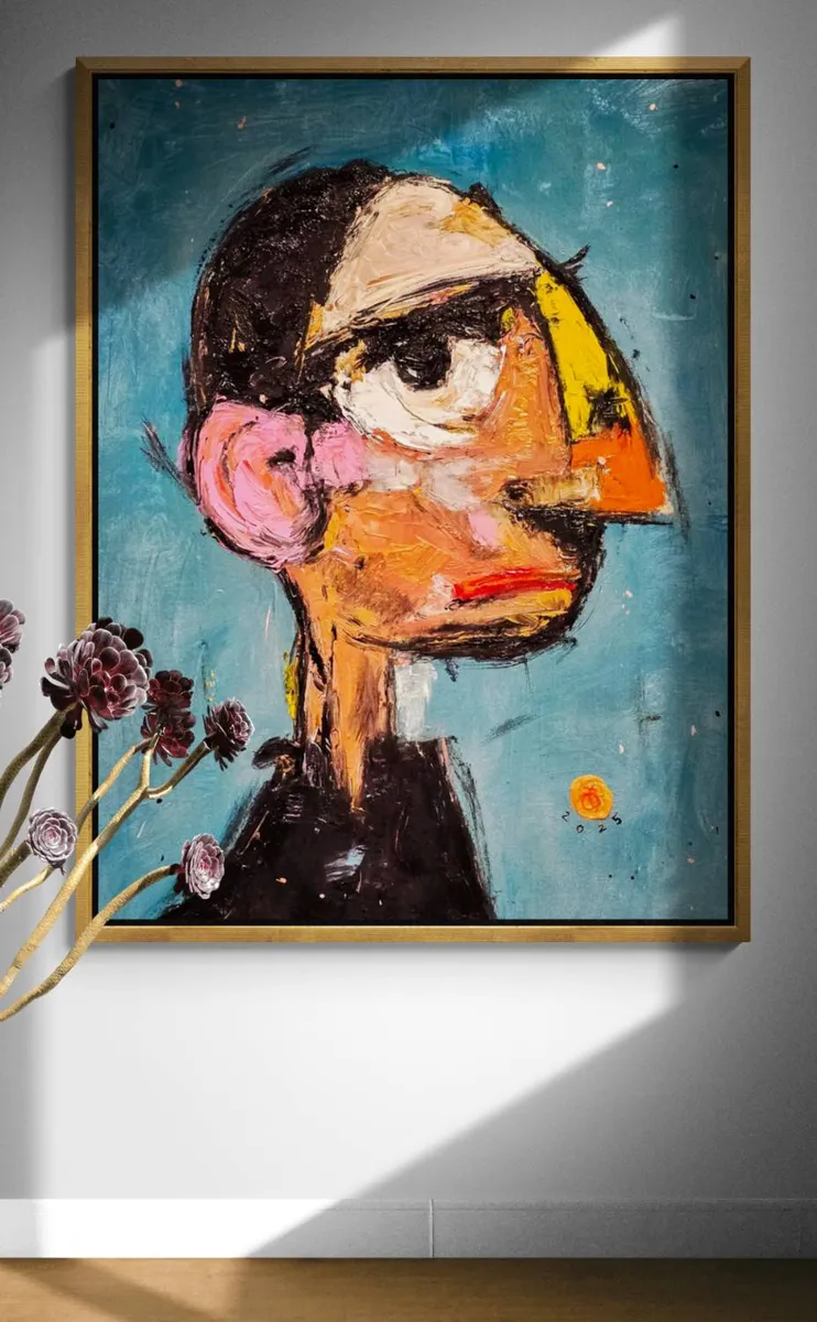 "Exalt" – Expressive Abstract Portrait by Retne A vision of elevation and surrender, "Exalt" captures the moment when the physical dissolves into something beyond. The elongated neck stretches towards an unseen force, the closed eyes suggesting both inner peace and defiance. The subject is suspended between serenity and intensity, with red lips acting as a focal point—a symbol of life, passion, or the remnants of an unspoken voice. The golden arc, a signature element in Retne’s work, encircles the figure like a halo, yet remains unfinished—a symbol of transformation rather than completion. Thick, textured strokes define the contours, blurring the lines between form and abstraction. The composition breathes movement, as if the figure is dissolving into light, leaving only an impression of grace, strength, and transcendence. A striking interplay of raw emotion and abstraction, this piece invites the viewer to interpret its presence in a personal way, making it a powerful statement piece in any contemporary art collection.