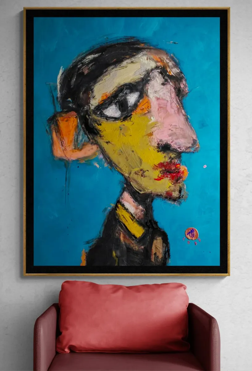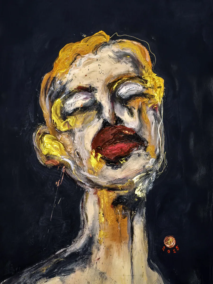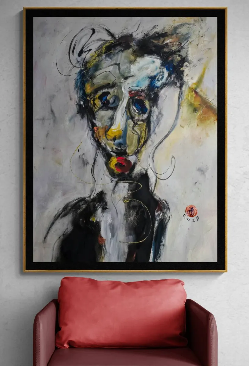 A sculptural and emotionally charged portrait built on thick layers and upward momentum. The elongated neck and upward gaze create a dramatic presence, capturing a moment of inner intensity with striking plasticity. A strong example of contemporary expressionism, perfect for collectors seeking originality, texture, and presence. This piece adds depth and character to any modern interior. Signed on the front. On the back – titled, dated, and hand-signed by the artist. Certificate of Authenticity included and hand-signed – confirming originality and authorship.
