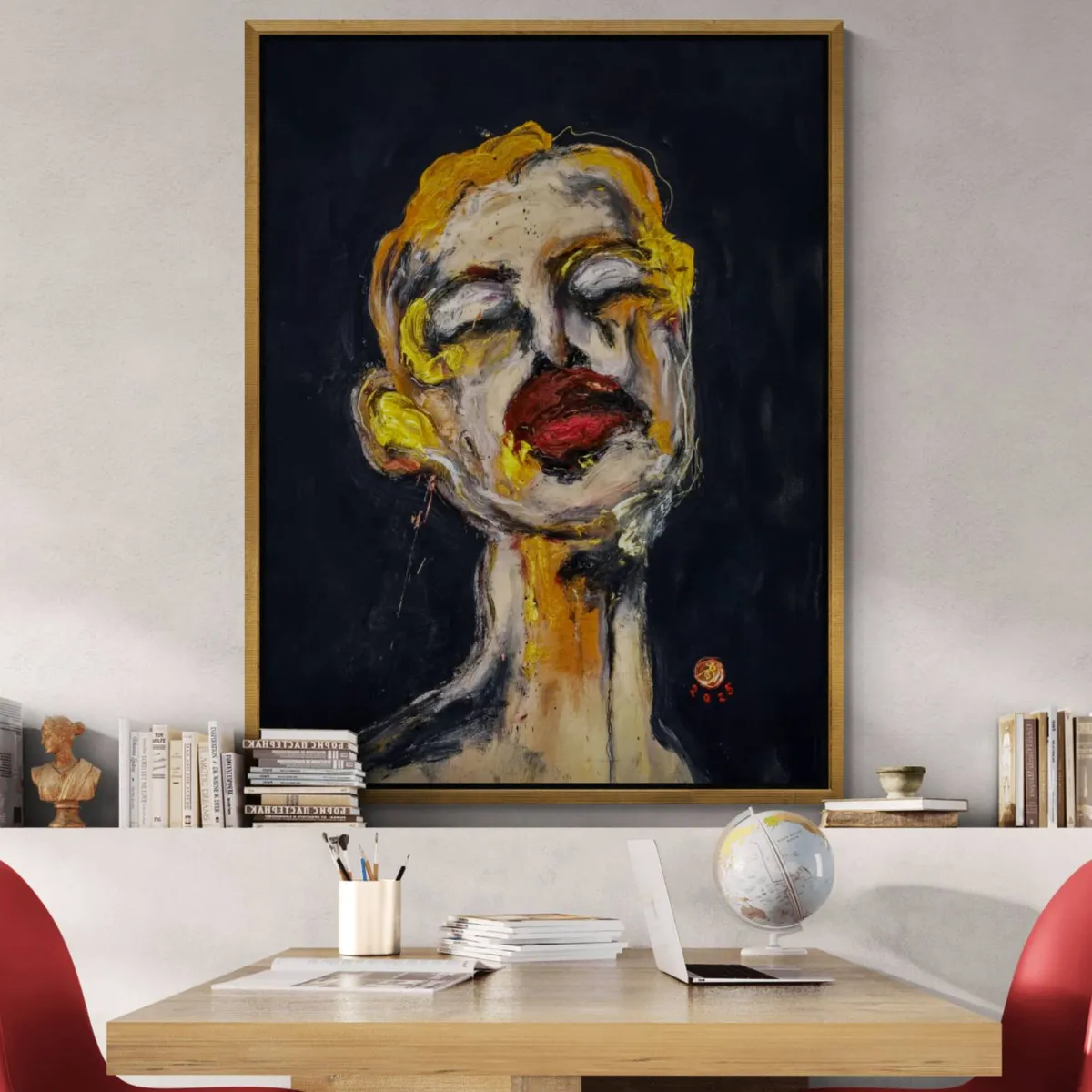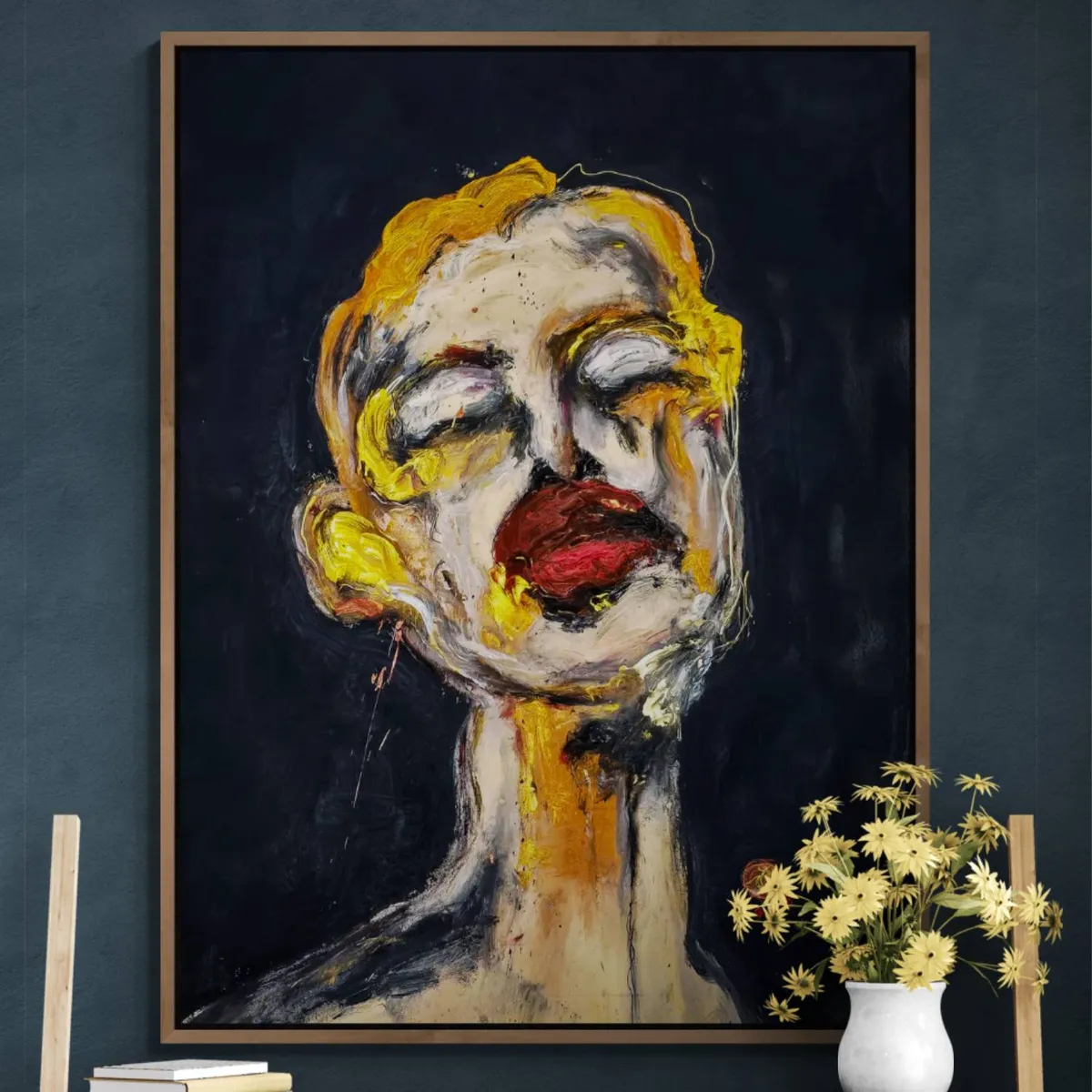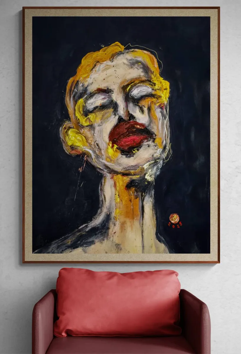 A sculptural and emotionally charged portrait built on thick layers and upward momentum. The elongated neck and upward gaze create a dramatic presence, capturing a moment of inner intensity with striking plasticity. A strong example of contemporary expressionism, perfect for collectors seeking originality, texture, and presence. This piece adds depth and character to any modern interior. Signed on the front. On the back – titled, dated, and hand-signed by the artist. Certificate of Authenticity included and hand-signed – confirming originality and authorship.
