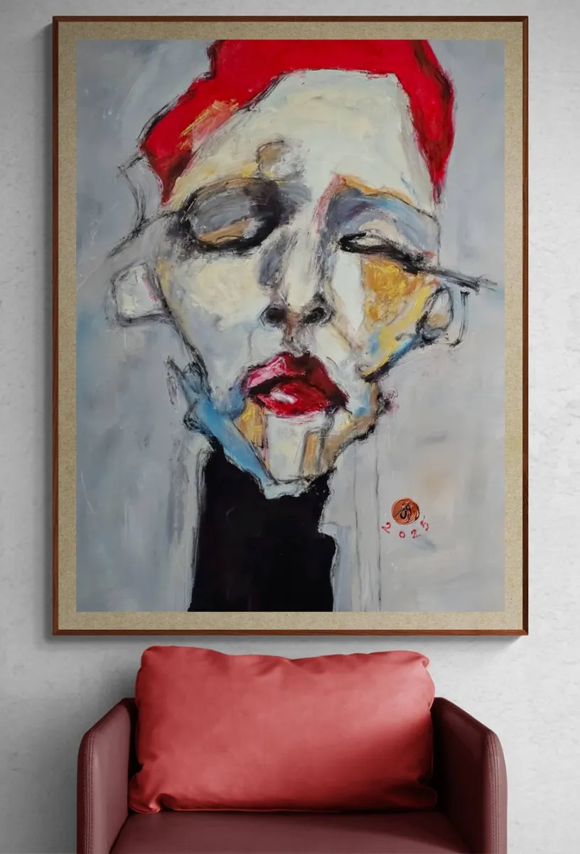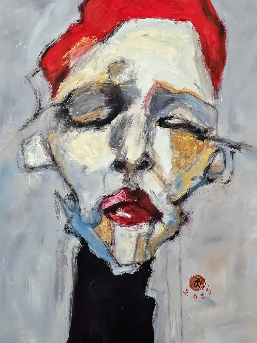 Ao N-7 Abstract Expressionist Character Portraiture with Iconic Motif