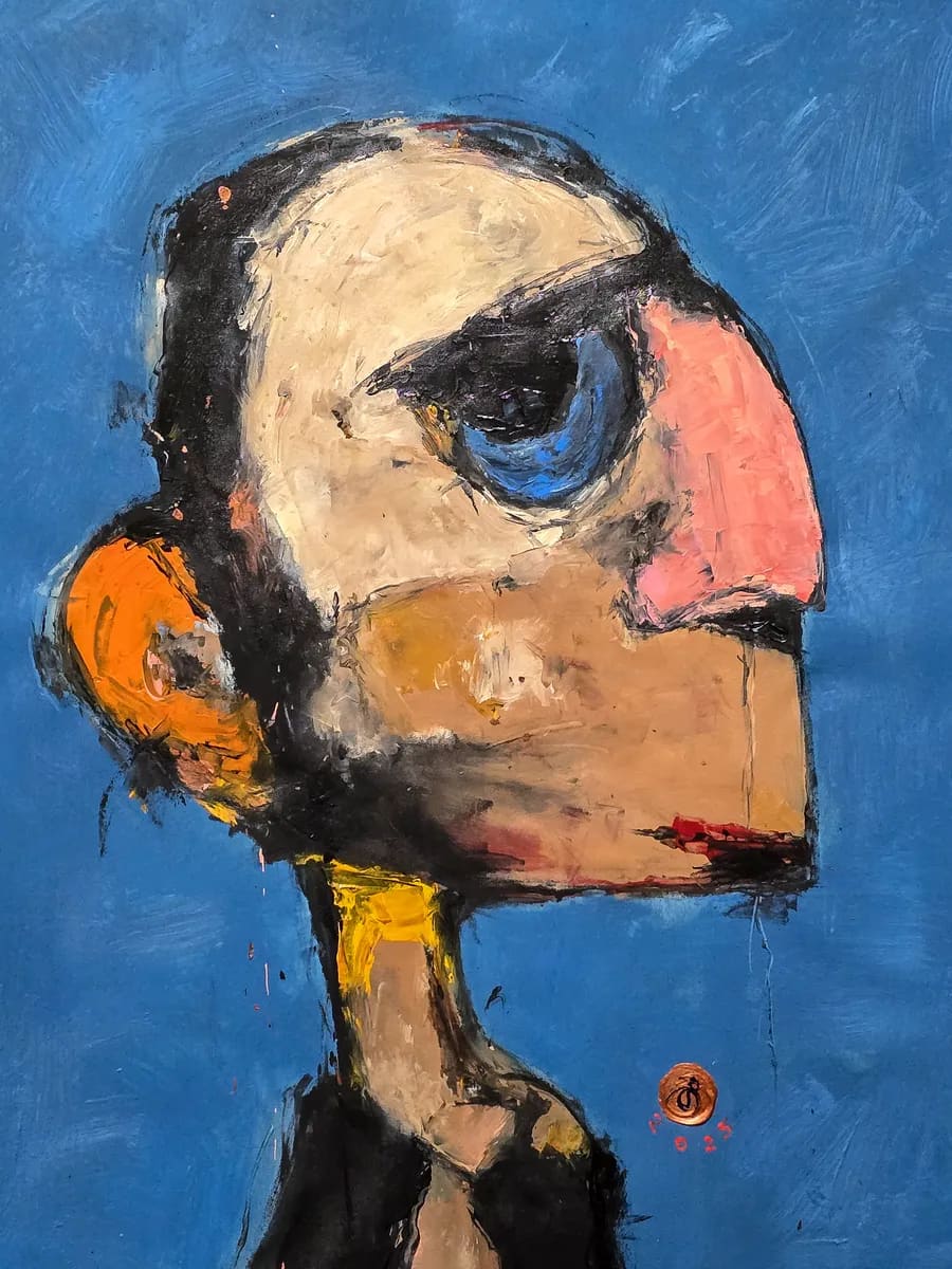 A powerful abstract expressionist composition, where a mask-like presence emerges through layered strokes and bold textures. The image hovers between figuration and abstraction, suggesting both anonymity and hidden identity. Each gesture carries raw energy, evoking a sense of ritual and timeless symbolism. This work belongs to Retne’s ongoing exploration of contemporary mask imagery, where expression transforms into archetype and abstraction becomes persona. Li N-11 bridges the intuitive power of gesture with the mystery of concealed character. Signed on the front. On the back – titled, dated, and hand-signed by the artist. Certificate of Authenticity included and hand-signed – confirming originality and authorship. Technical Details Canvas size: 90×70 cm (5 cm margins for stretching) Recommended stretcher frame: 80×60 cm Medium: Acrylic and mixed media on canvas Finish: Sealed with UV Gloss Varnish (shiny finish) Canvas Edges & Composition 5 cm margins around the edges are painted to maintain full visual continuity when stretched. Strokes and textures wrap around the sides. Shipping & Packaging Courier Services: DPD, GLS, UPS, PostNL, FedEx, LP EXPRESS Packaging: Shipped rolled in a secure heavy-duty tube for safe international delivery Tracking: Provided Important: Please wait to order a stretcher frame until the artwork arrives to ensure precise fit.