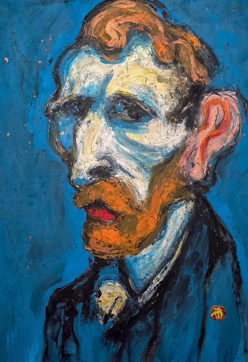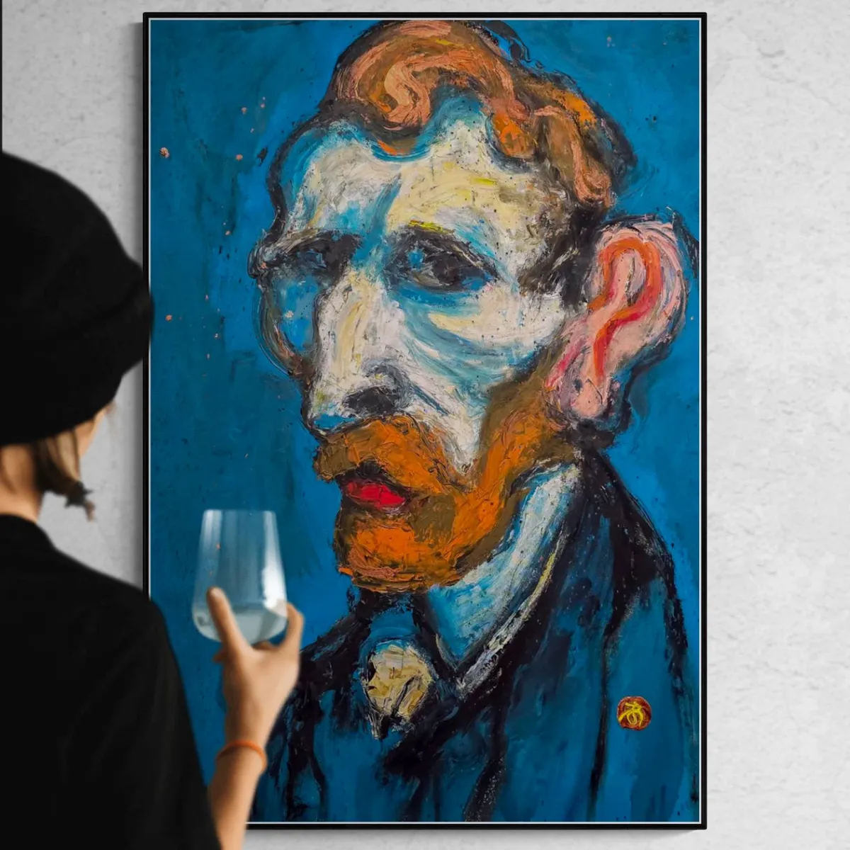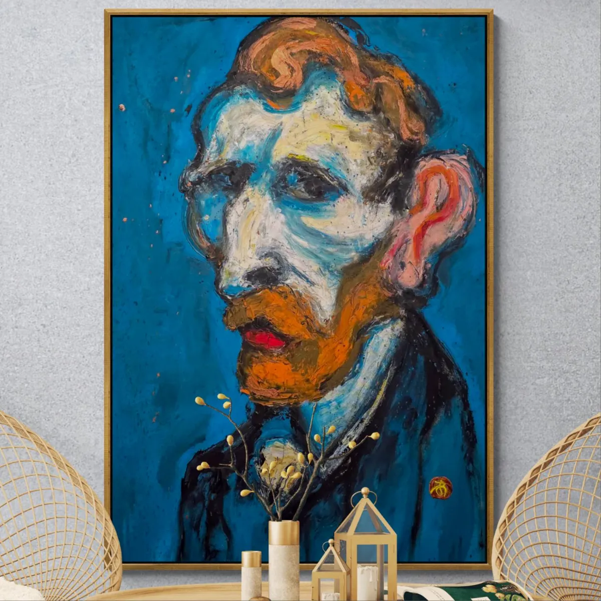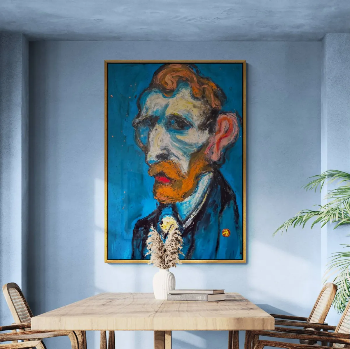 A bold contemporary character portrait inspired by the expressive visual language of Vincent van Gogh, reinterpreted through a modern artistic lens. The composition combines strong emotional presence, confident brushwork, and textured surfaces that give the figure depth and intensity. Familiar yet transformed, the character emerges with a powerful visual identity that feels both timeless and contemporary. The dynamic interplay of colour, gesture, and form creates a striking focal point, making this artwork an impactful element within modern interiors. It works equally well in living spaces, creative studios, or curated collections, bringing character, atmosphere, and artistic individuality into the environment.