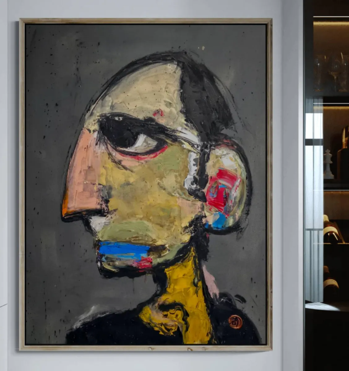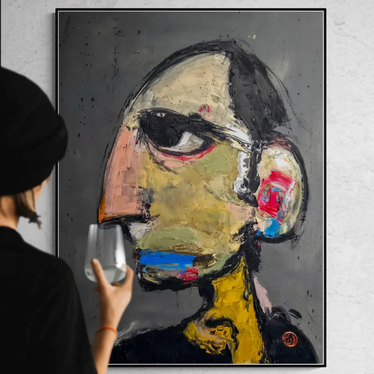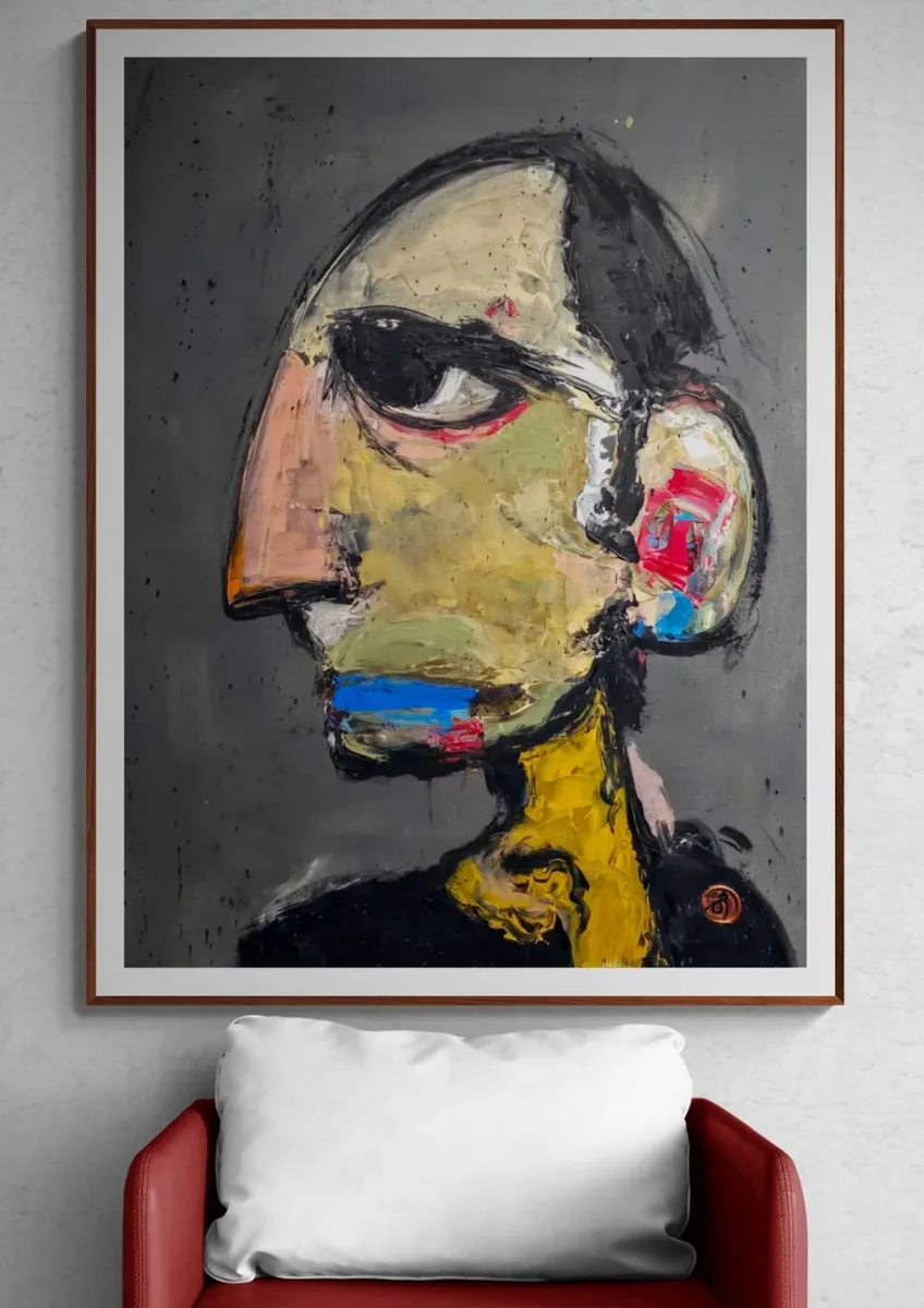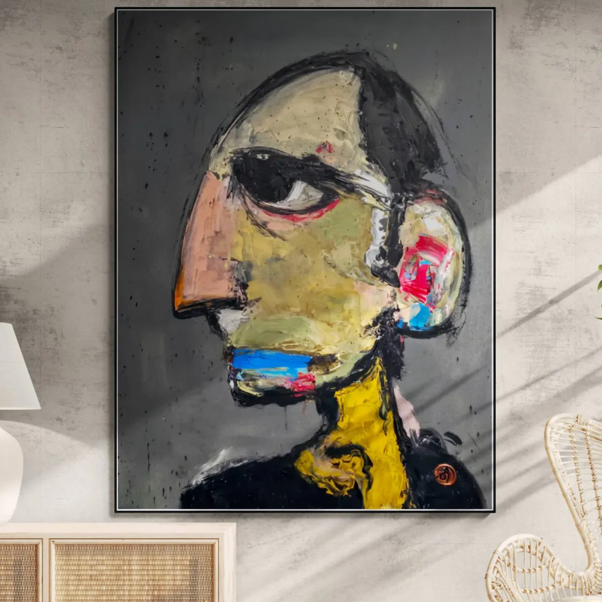 A bold contemporary character portrait inspired by the expressive visual language of Vincent van Gogh, reinterpreted through a modern artistic lens. The composition combines strong emotional presence, confident brushwork, and textured surfaces that give the figure depth and intensity. Familiar yet transformed, the character emerges with a powerful visual identity that feels both timeless and contemporary. The dynamic interplay of colour, gesture, and form creates a striking focal point, making this artwork an impactful element within modern interiors. It works equally well in living spaces, creative studios, or curated collections, bringing character, atmosphere, and artistic individuality into the environment.