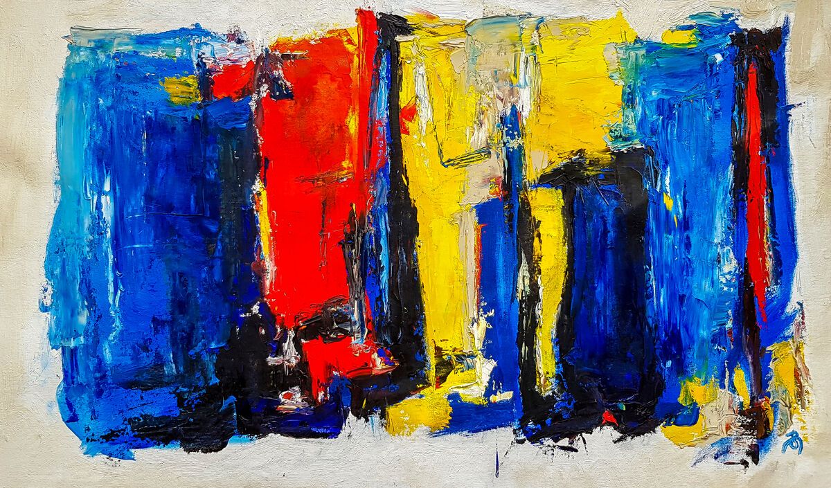 The modern look and visual depth of this bold colorful, textured piece create a strong emotional or expressive abstract in his unique style. *** The painting is 100% hand-painted using Oil paint, UV satin varnish on cotton canvas (360 g/m²) . *** The canvas has been stretched and mounted. The owner of this artwork will enjoy it right out of the box as it arrives READY TO HANG! *** Painting signed on the front. Date and signed on the back. All of the Retne artworks come with a signed certificate of authenticity. *** Size: (H)67x(W)114x(D)2.5 cm.