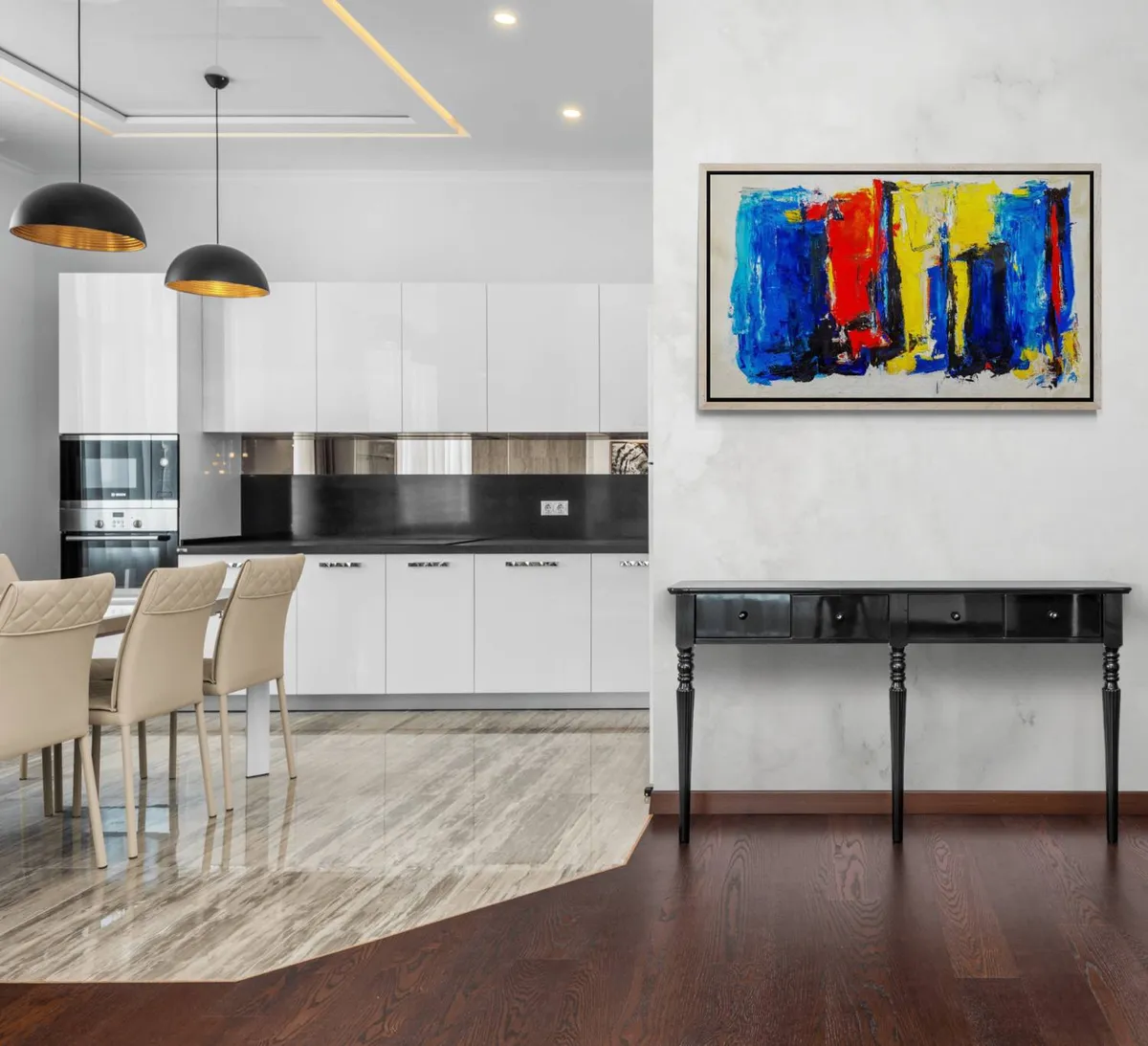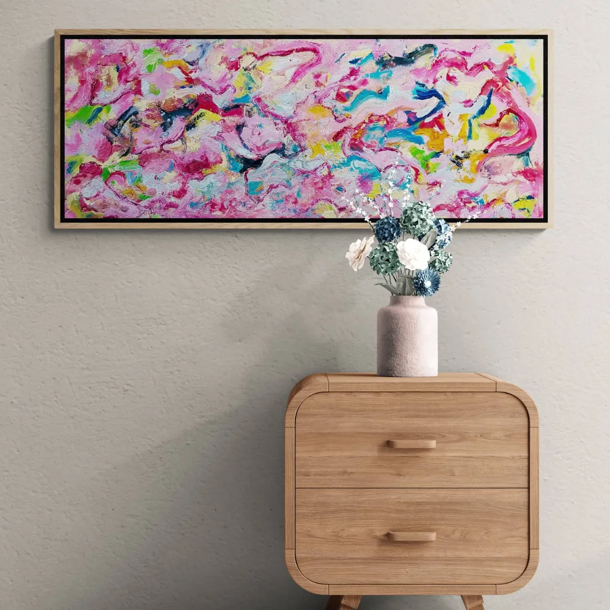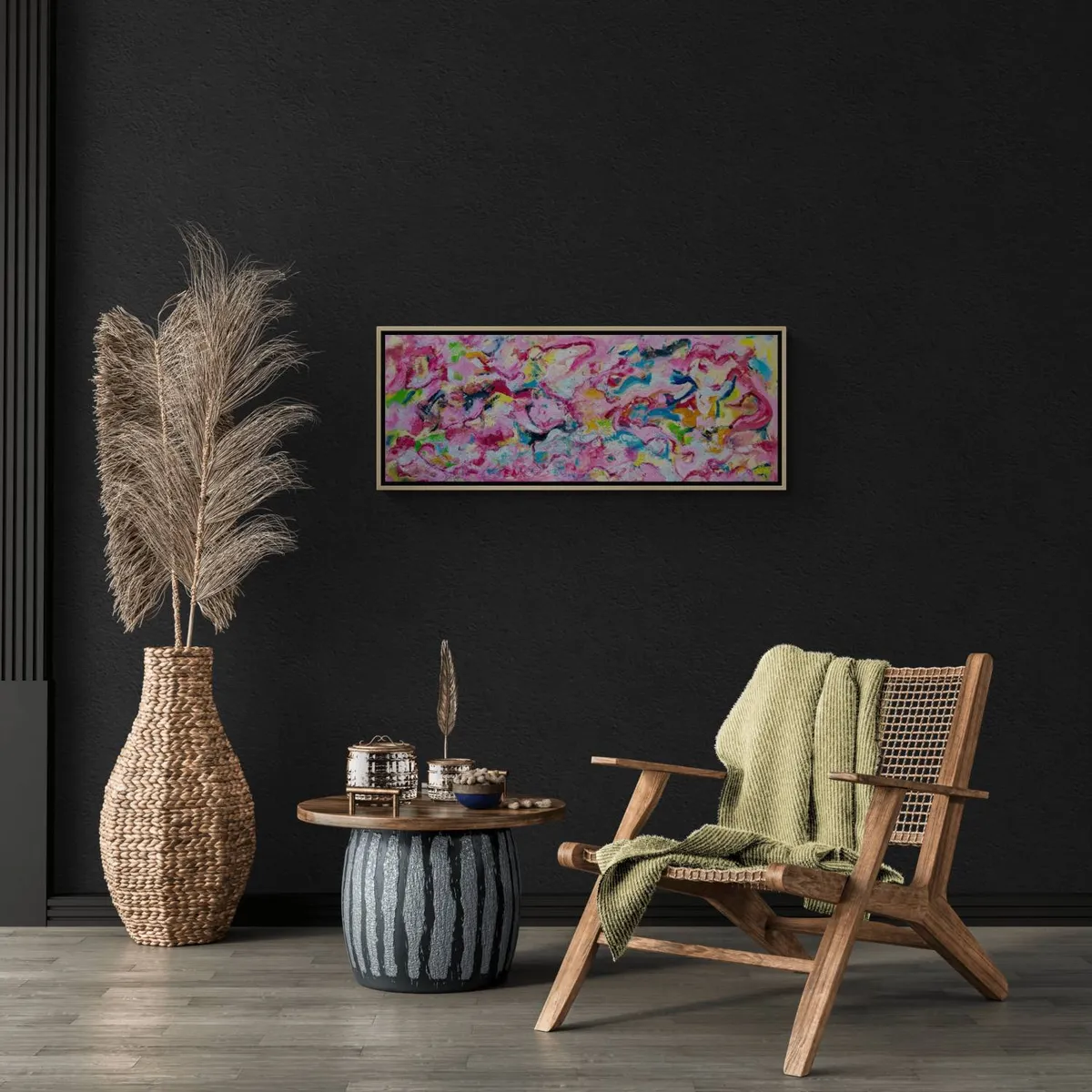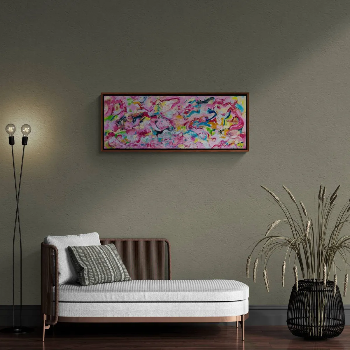 The modern look and visual depth of this bold colorful, textured piece create a strong emotional or expressive abstract in his unique style. *** The painting is 100% hand-painted using Oil paint, UV satin varnish on cotton canvas (360 g/m²) . *** The canvas has been stretched and mounted. The owner of this artwork will enjoy it right out of the box as it arrives READY TO HANG! *** Painting signed on the front. Date and signed on the back. All of the Retne artworks come with a signed certificate of authenticity. *** Images size: (H)43x(W)115x(D)2.5 cm.